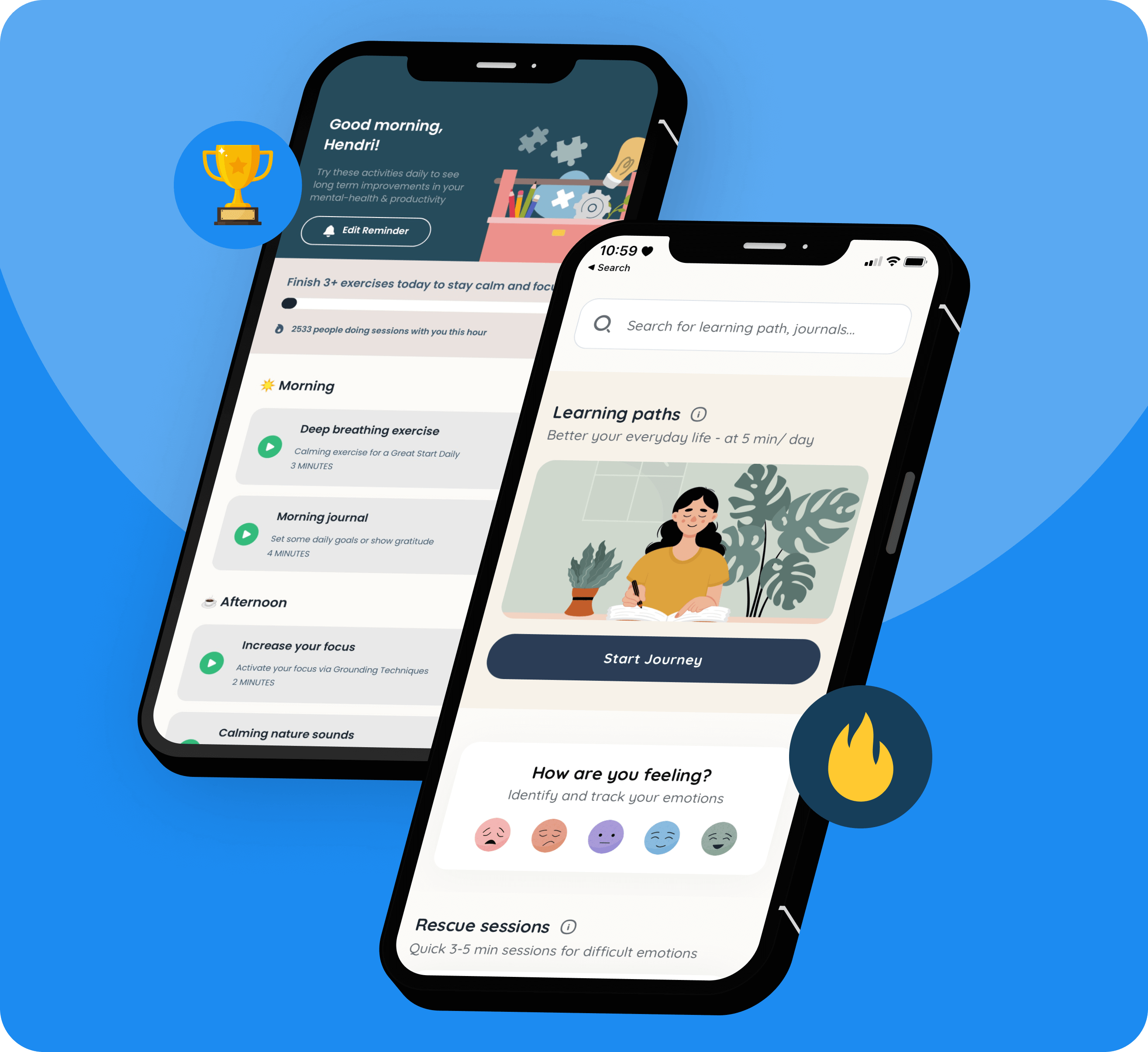 Feel better with rescue sessions, build skills with learning paths, and discover yourself through assessments and journals